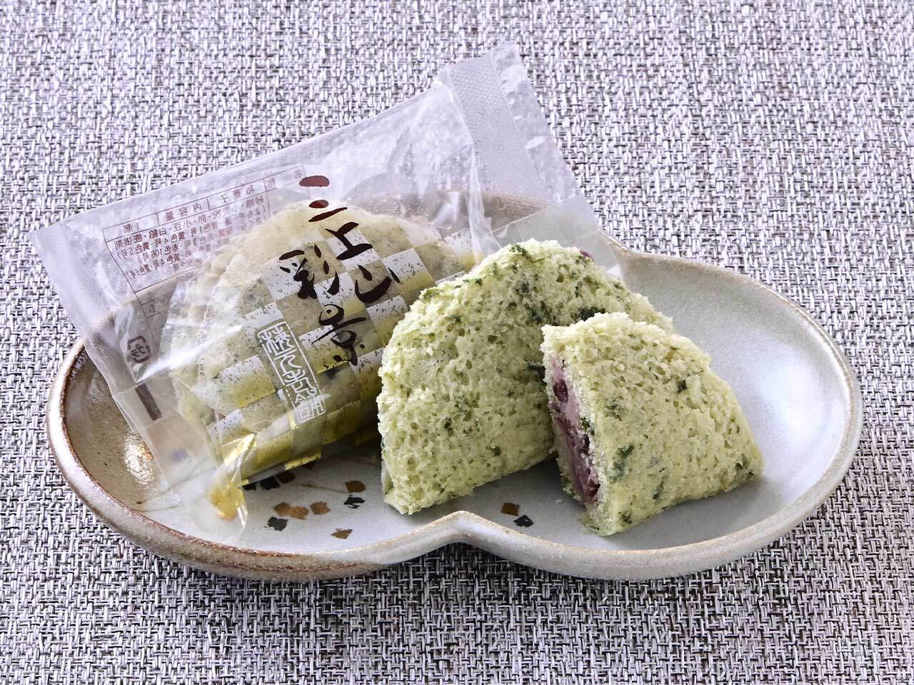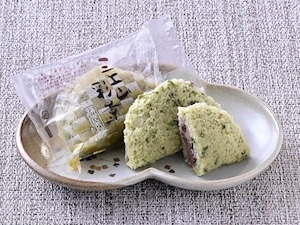 生地に季節のよもぎをまぜてふわふわっと蒸して粒あんをはさみました。