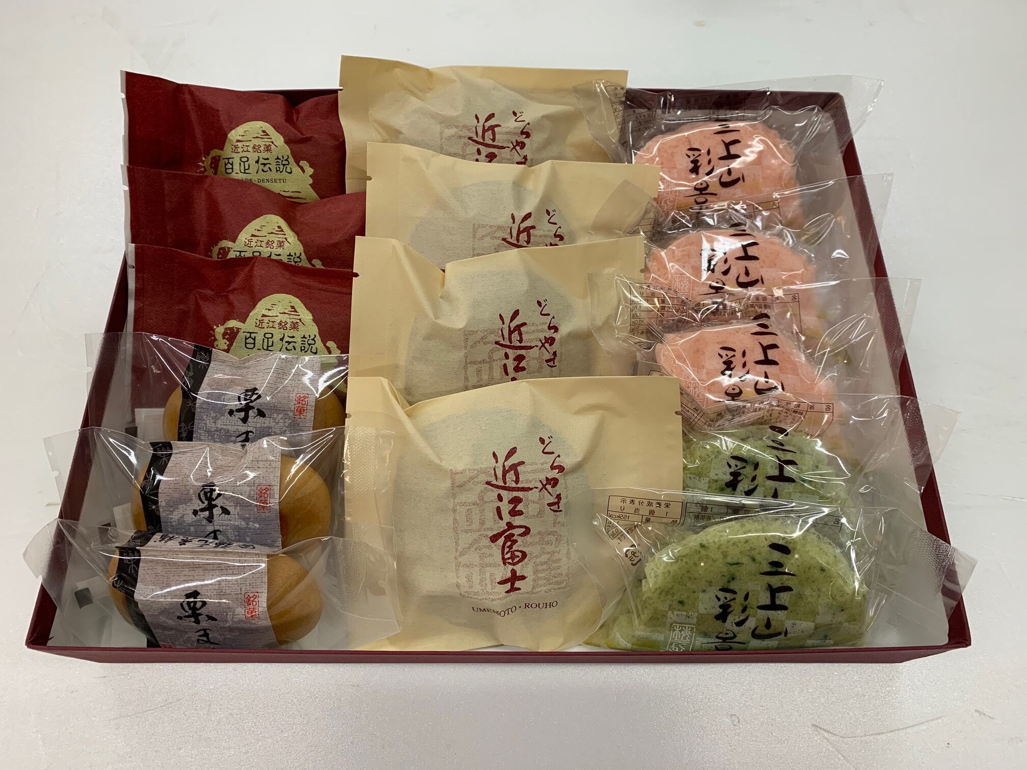 【詰合せ内容】近江富士(粒あん)4ケ、百足伝説3ケ、栗まん3ケ、三上山彩景(桜あん)3ケ、(蓬)2ケ